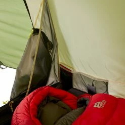 Das Innenzelt bietet ausreichend Platz für 3 Personen. Kleinigkeiten lassen sich in den vier Netzseitentaschen verstauen. Der Eingang ist durch ein Moskitonetz verschlossen. Das fördert die Belüftung und hält unliebsame Gäste draußen. Bei kühler Witterung oder als Sichtschutz, kannst du das Netz aber auch abdecken.