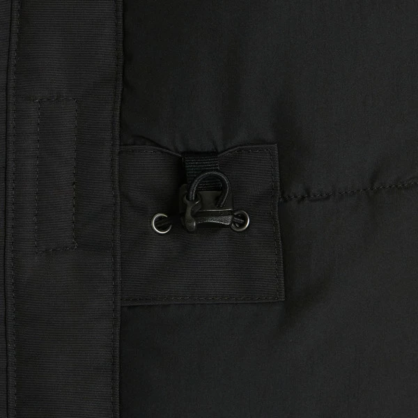 - Kapuze mit Volumenregulierung hinten (mit Klettverschluss) und abtrennbarem Kunstpelz-Besatz
